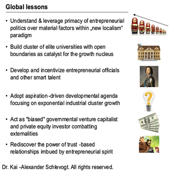 While they are moving up the learning curve, leaders around the globe should focus not only on imitating Hefei, but strive hard to emulate it. They can do so by smartly blending the operationalized insights gained from the “Six Capital” model with the indigenous ideas and other resources in their country.