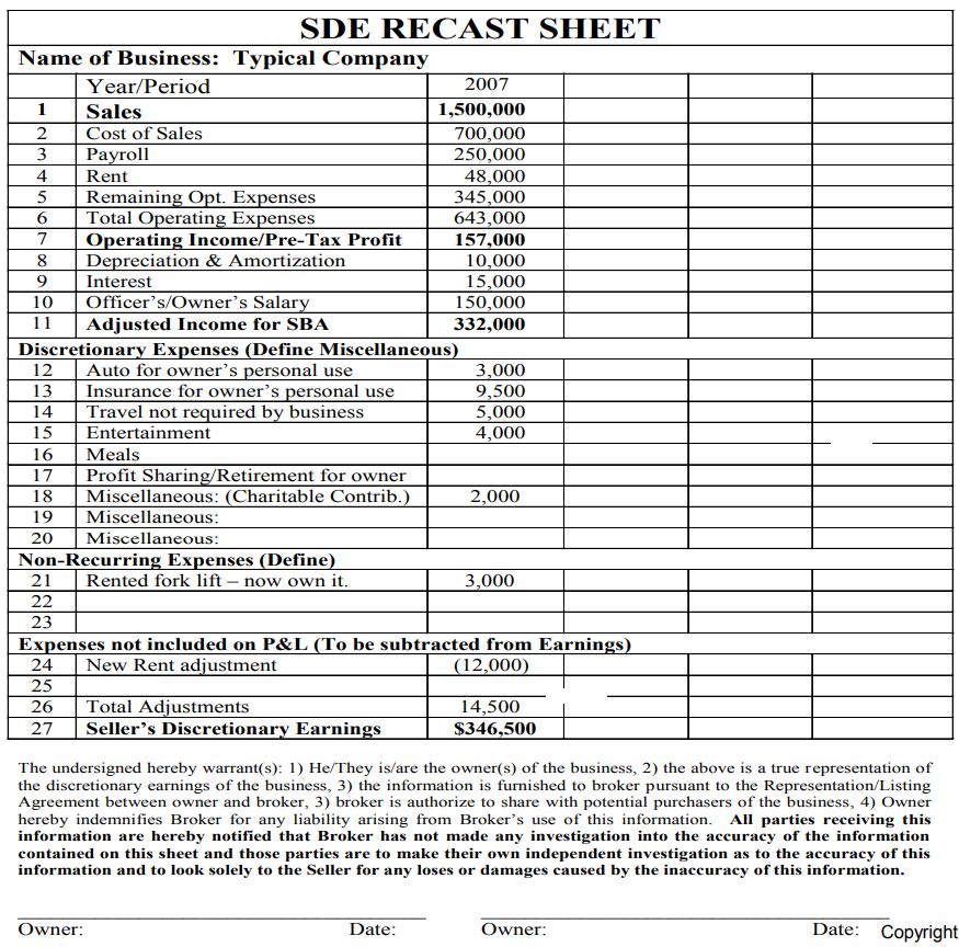 Most small businesses are managed to minimize taxable income. Thus, it is often necessary to make adjustments to the reported financial statements in order to express the actual cash flow benefits available for the owner. Due diligence, by adjusting the business financial statements facilitates its comparison to the industry standard ratios.