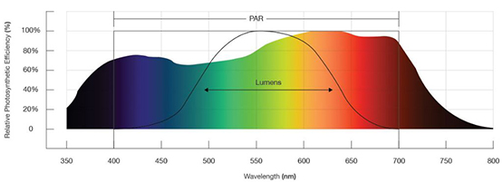 Plants and people perceive sunlight very differently from one another. Lumens is a unit of measurement based on a model of human eye sensitivity in well-lit conditions, which is why the model is called the photopic response curve to perceive color and light: