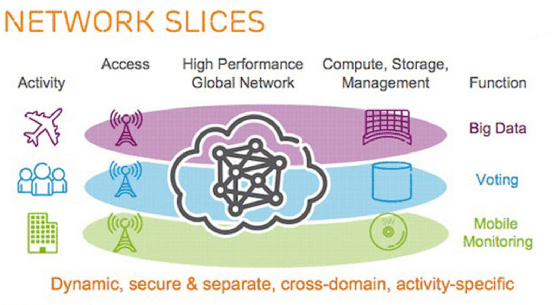 Each virtual network (network slice) has an independent set of logical network functions that support the requirements of a particular project; ‘logical’ refers to software.