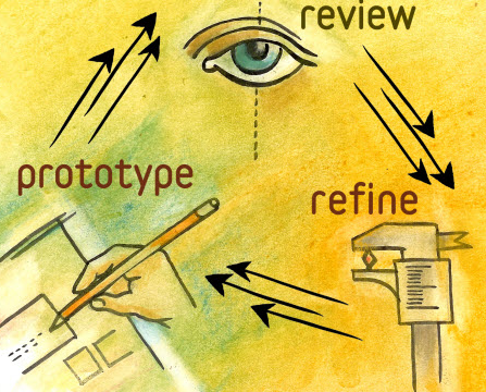 As an iterative process, you will repeatedly build prototypes to show potential end-users and refine your solutions based on what you learned, repeating as needed.