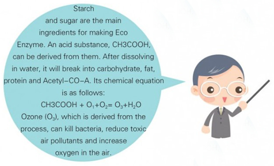 Eco-Enzymes convert ammonia, NH3, to nitrate NO3, a natural hormone and nutrient for plants. They convert CO2 to the carbonate CO3, which is beneficial to all marine life. The O3 generated from this process will reduce the heavy metals in clouds and thus release heat from the earth.