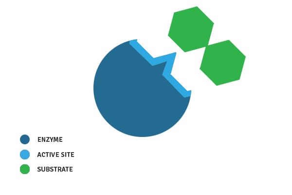 Enzymes are extremely small, powerful proteins made of complex chains of amino acids folded in shapes like Pac-Man. They are able to break down, modify, and even create things!